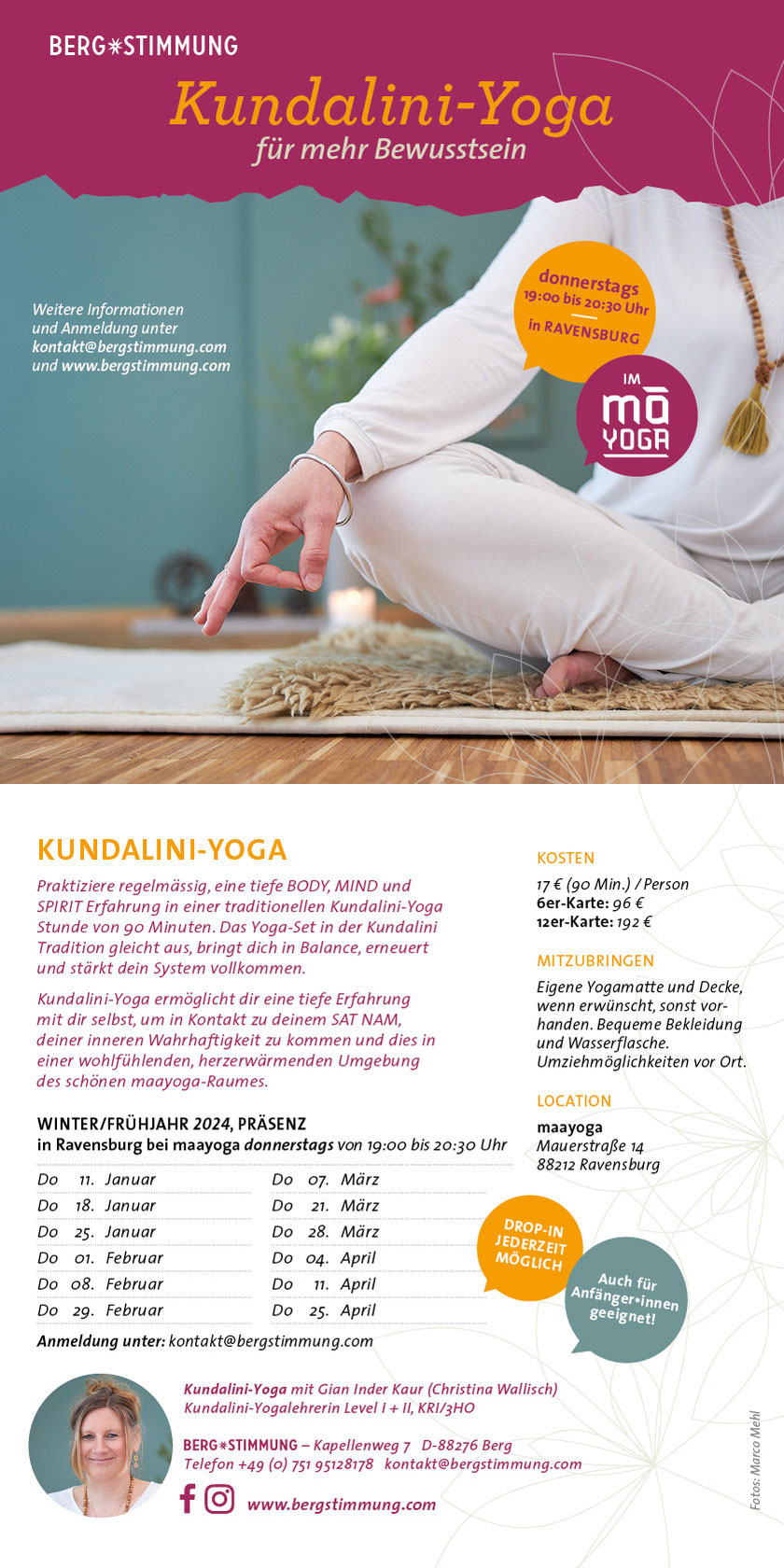 kontakt@bergstimmung.com oder über die eversports App (maayoga).